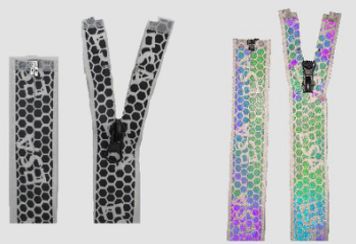 5# Fermeture à glissière fermée avec finition réfléchissante en blanc.